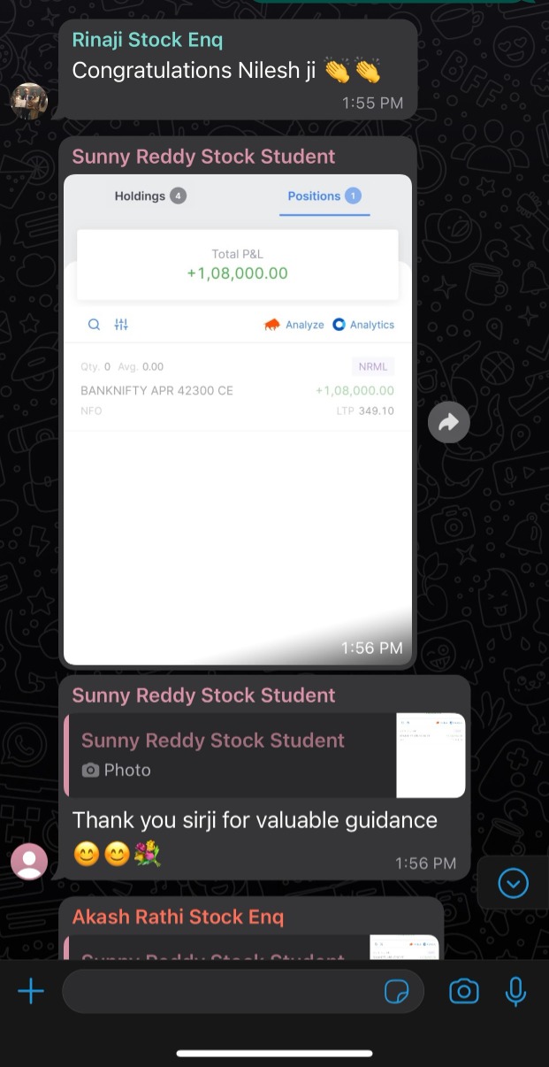 Today I made a profit of 74,000 on investment of 35,000. Thank you very much Sudhindra Sir & Shivani Mam.